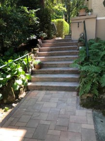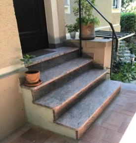 In 2019 und 2020 wurden die kompletten Pflastersteinarbeiten einschl. des Unterbaus und die Naturstein Außentreppenbereiche mit Granit "Multicolor" ausgeführt.